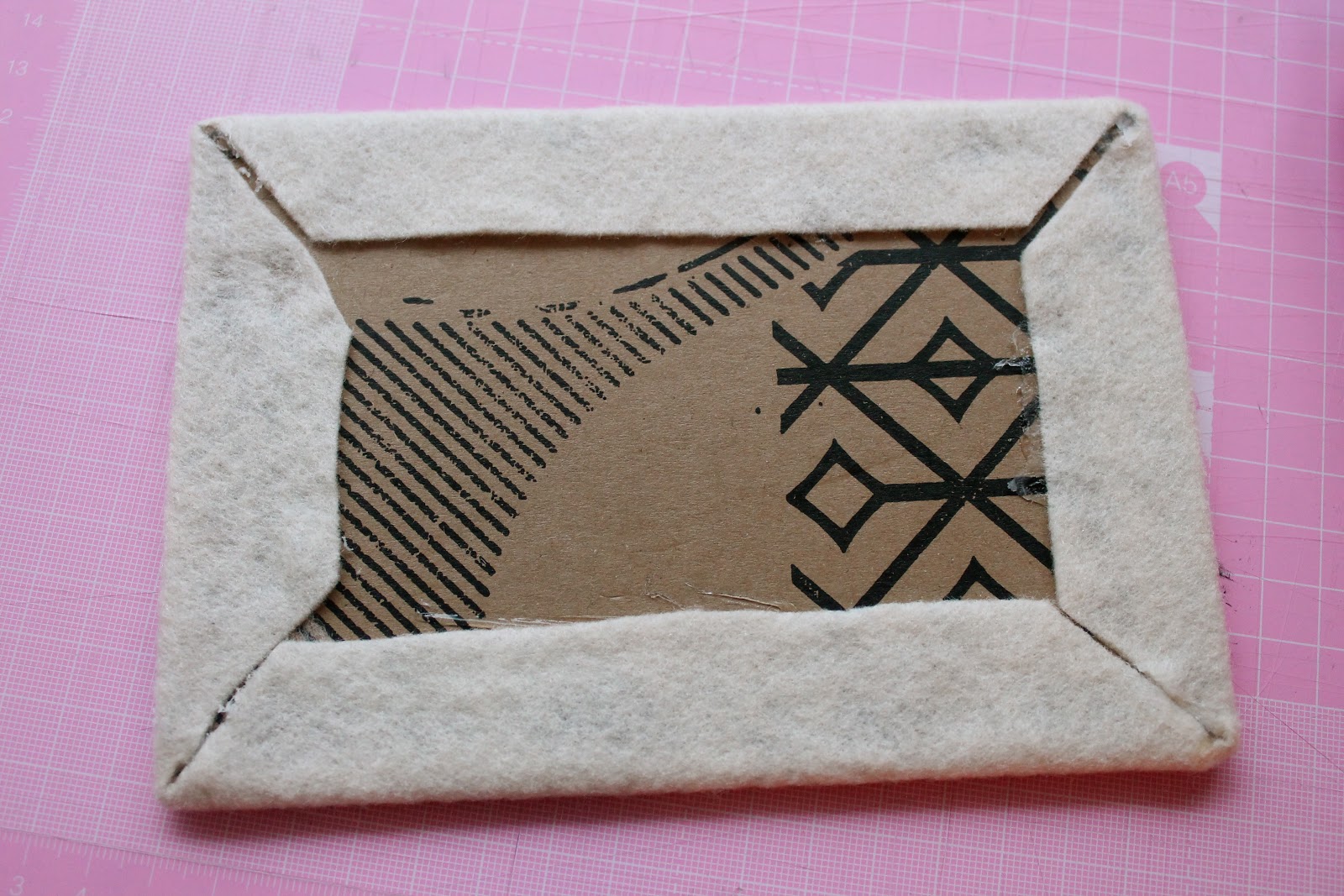 The base of this is basically going to be an rectangular pocket which we will then slip our pieces of cardboard into. Your card pieces should look like the below. I just used cardboard box card, but the stronger the card you use the better. Use a craft knife, ruler and mat to cut the correct sizes.