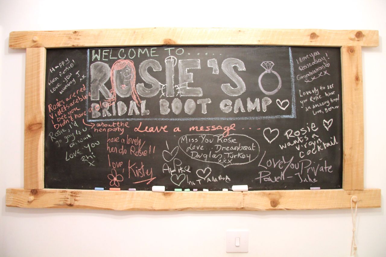 Rosie is a fitness instructor/trainer, and also a dancer, as are nearly all of her friends! So we came up with the idea of having a 'bridal boot camp', where we put Rosie through her paces to see if she is ready to become a married woman!