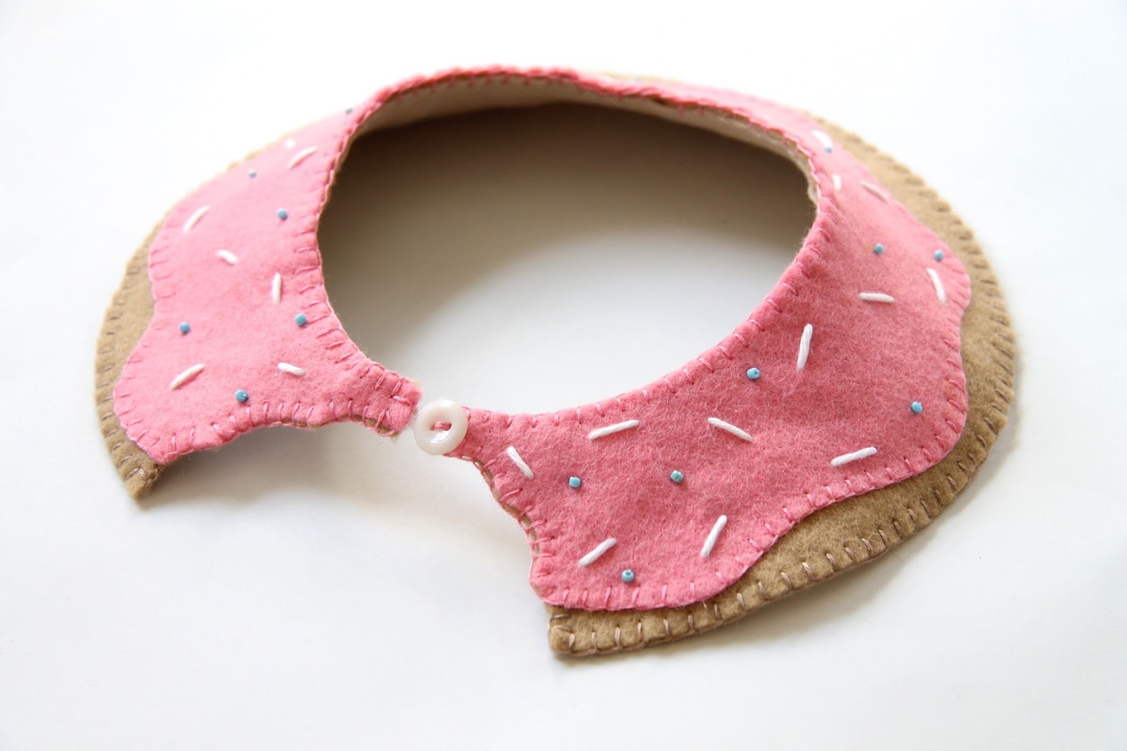 Once you are happy that your doughnut is perfectly embellished with sprinkles, it is time to make a fastening. Now you might want to try your own method of fastening, since mine was a bit trial and error, but it seems to work pretty well, I'm just not sure how durable it will be in the long run.